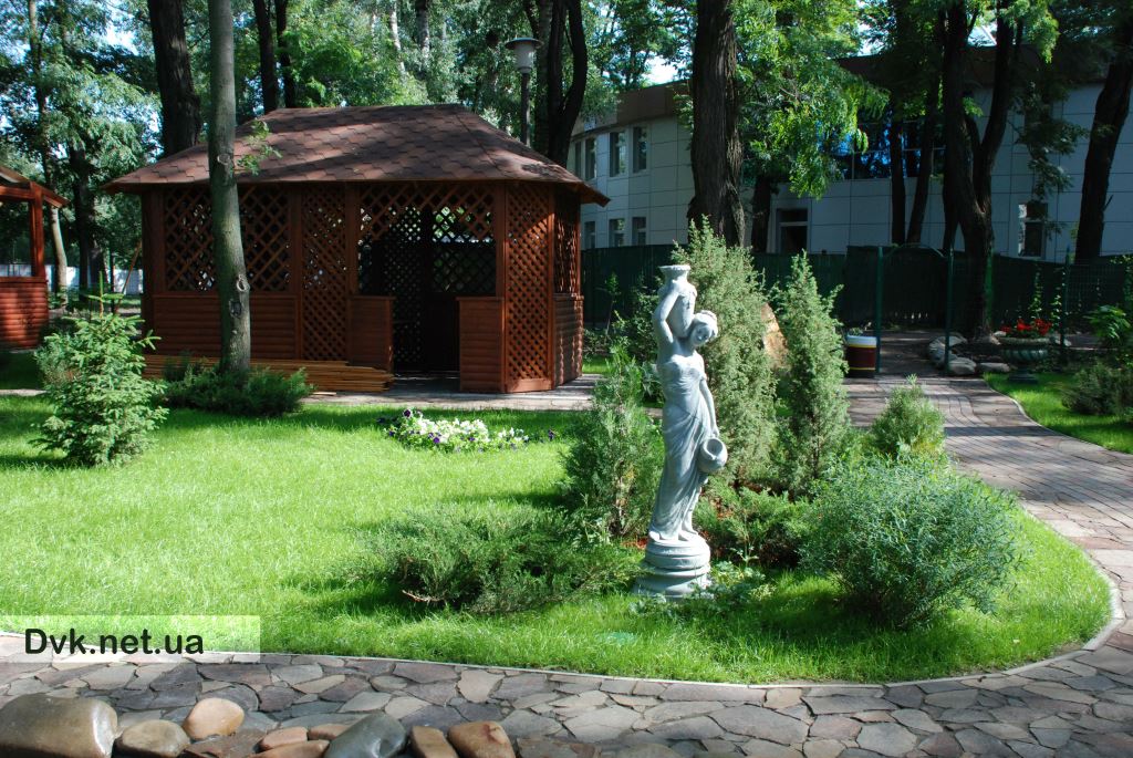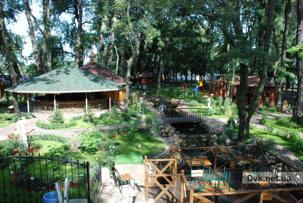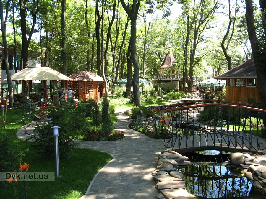 The purpose of designing an area in a city park for the cafe territory placed in the Boryspil downtown is to create a quiet place for walking, as well as for weddings, parties, banquets or family gatherings.