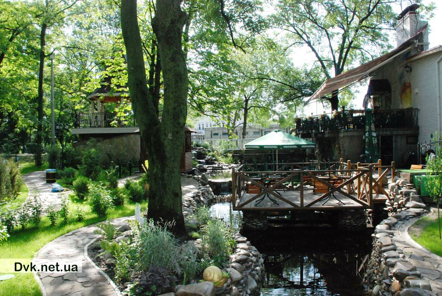 There was the wish to create a separate comfortable sitting area with waterfalls and streams with bridges, pavilions, green vegetation, flower gardens and statues, despite the location of the cafes near the bustling city center, and we succeeded.