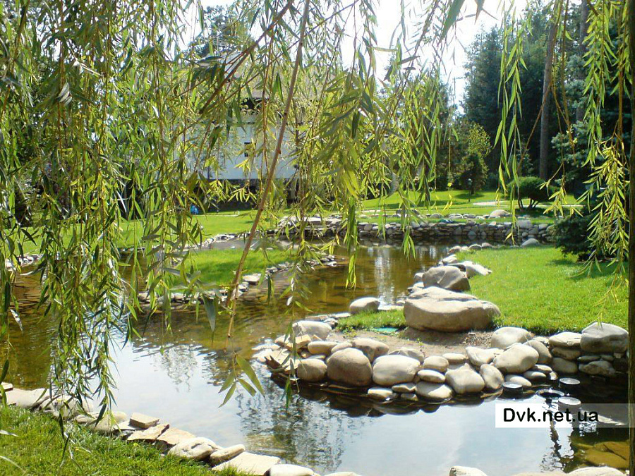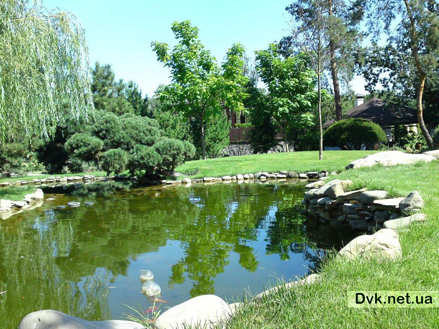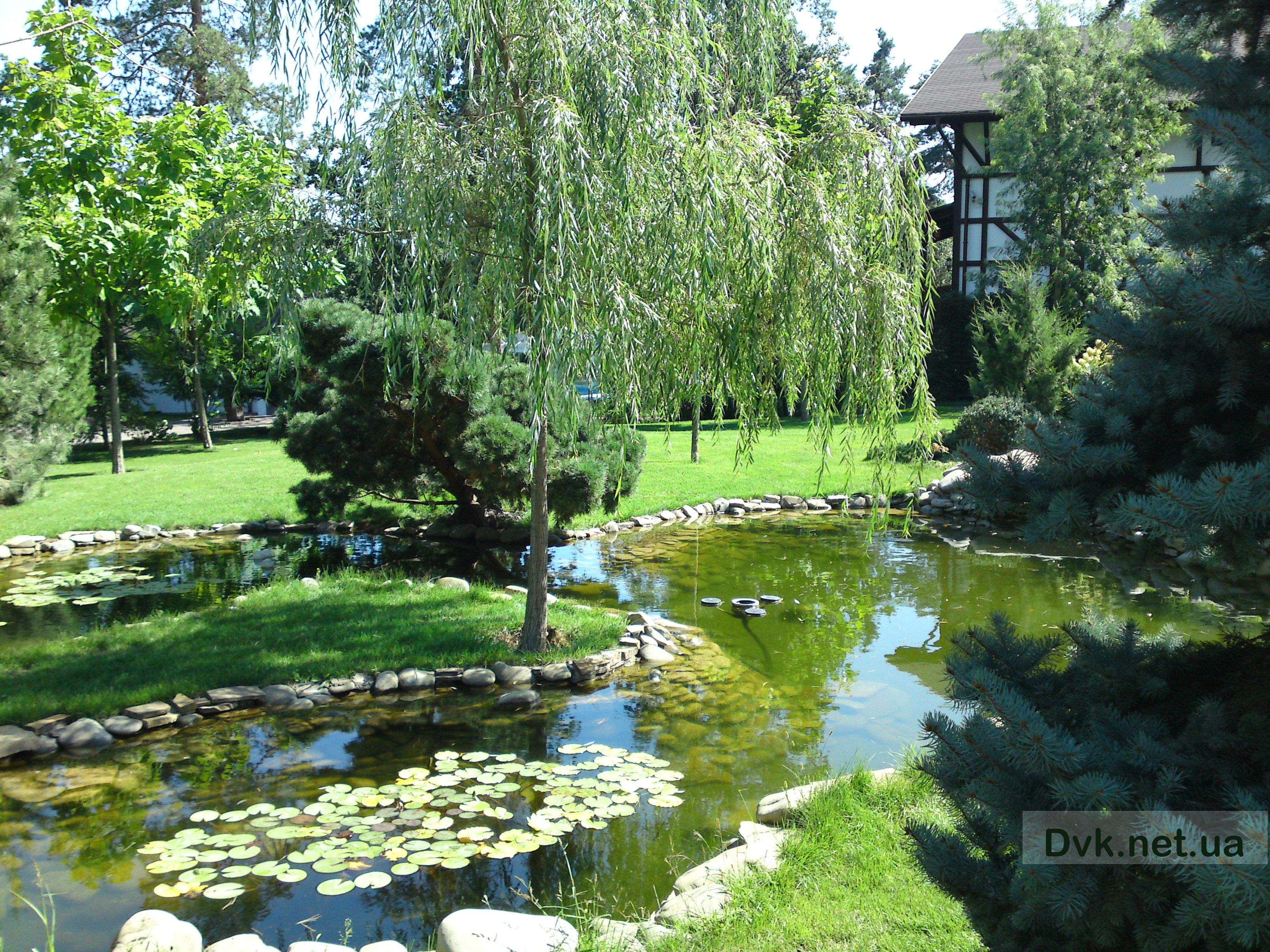 This beautiful garden was designed in a minimalistic style on a large plot. It is located among the fir trees and weeping willows. Natural landscape underlines the sinuous pond inhabited by decorative koi,it is landscaped with water plants as well as the island which is planted with willows. Natural stone, bonsai, conifer trees and shrubs represent the Japanese minimalism, brevity, simplicity and extraordinary scenic beauty. The garden where there is nothing more you can focus only on the relaxation.