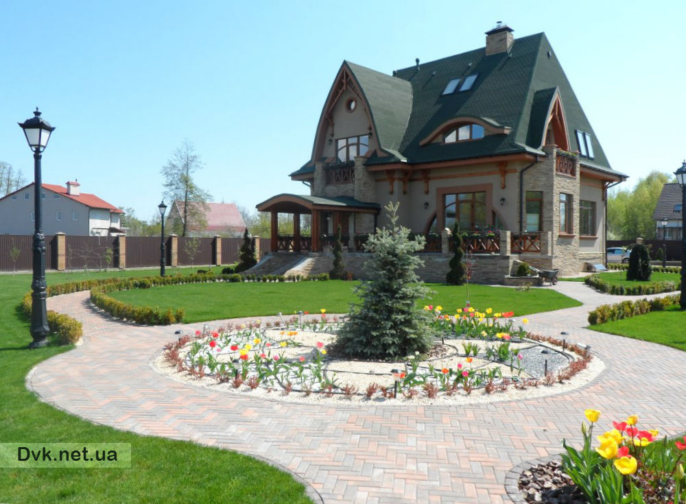 Specialists of landscape design studio have arranged this sunny courtyard completely within 2 working season. They have done everything from the reservoir area of 1300 sq.m., the construction of 4-meter-high waterfall, and the planting of ornamental plants.