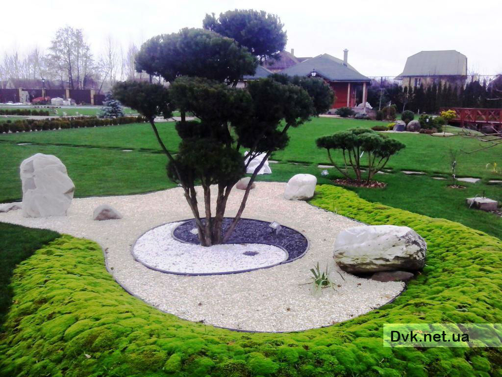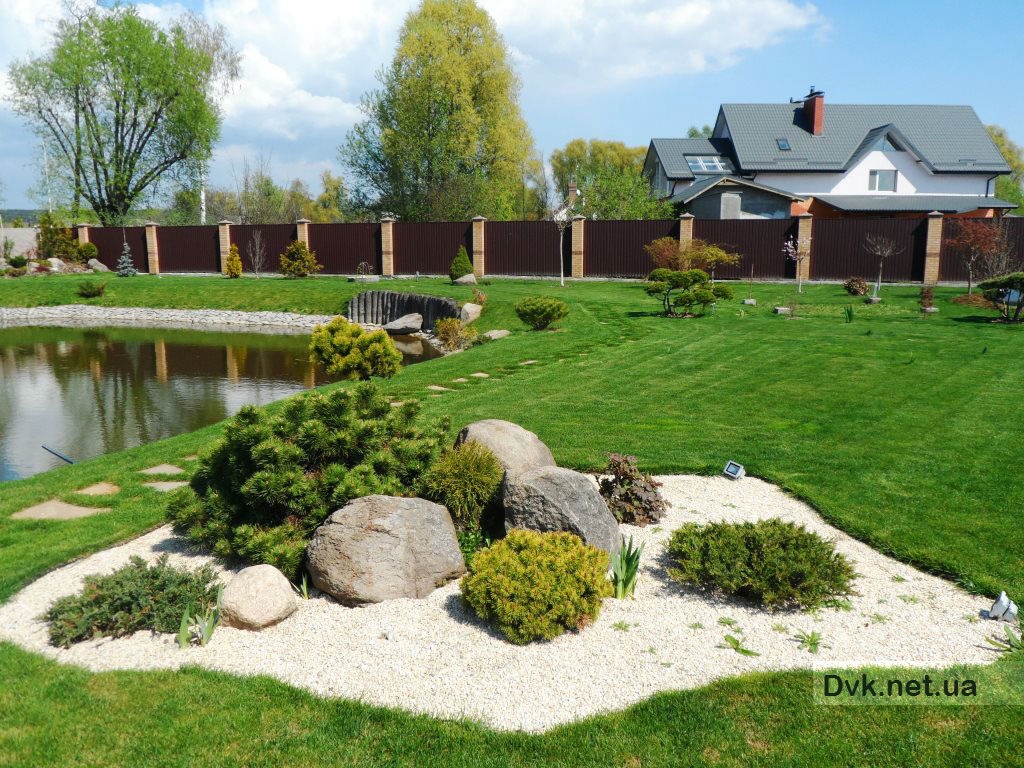 The main goal of projecting was to keep a wide space area of 80 acres without cluttering tall trees. We tried to make the area as open for the sunlight as possible. Almost in any point one can see the whole garden at once, nothing remains hidden from view. At the photo you can see a still quite young garden with more overgrown plants and trees.- 1Customer An individual