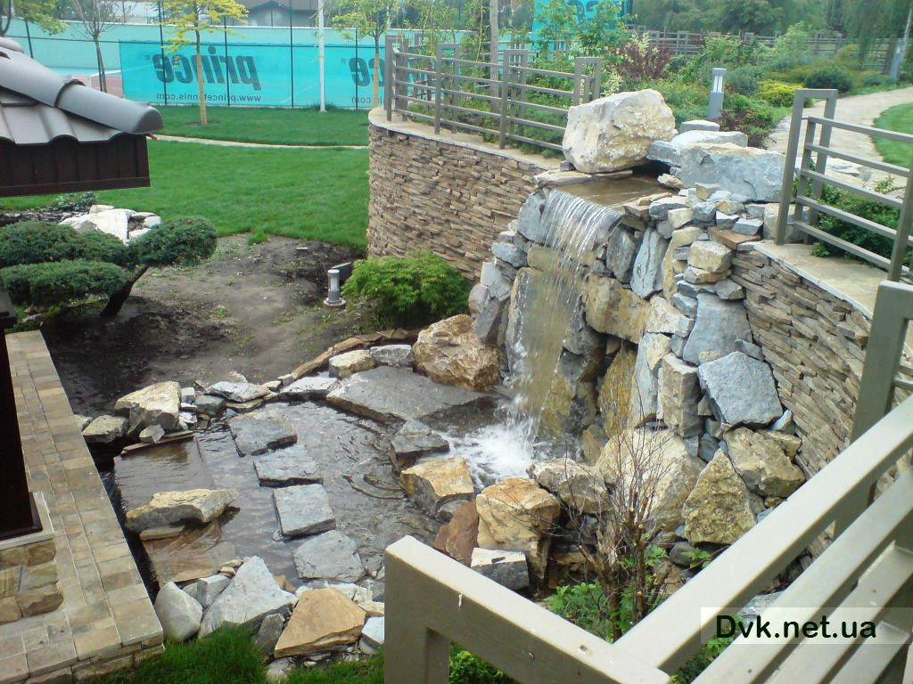 У цьому саду японського стилю компанія Dvk створила зону відпочинку із застосуванням водойм.Було побудоване озерце, природніх обрисів, 3-х метровий водоспад, оздоблений поєднанням плаского та округлого каменю та невеликий струмок з питною водою біля альтанки.