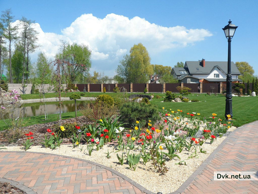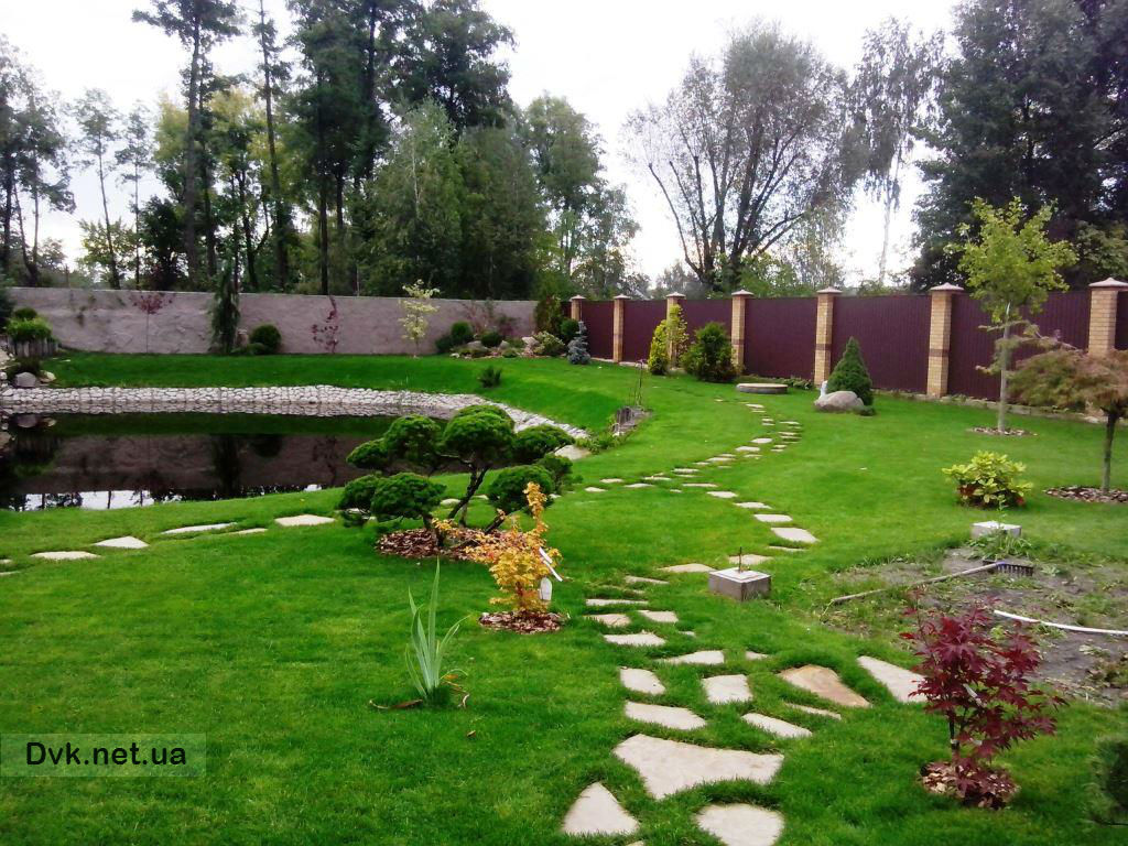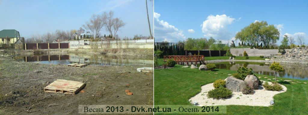 - 3Надані послуги Проектні роботи, облагородження водойми, укріплення берегу, будівництво водоспаду, мощення доріжок та площадок, укладка рулонного газону, посадка дерев, створення квітників та клумб.